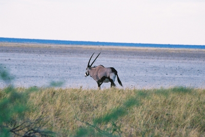 Oryx walking out onto the salt pan |